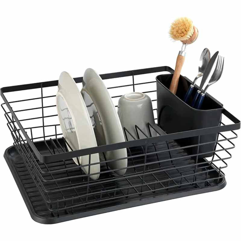 Secaplatos Metal Negro Con Base Y Cubertero 36x30x14cm